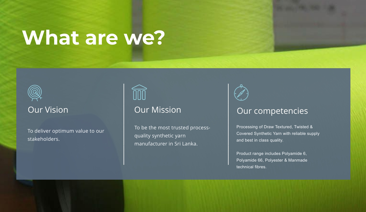 Filotex Lanka (Pvt) Ltd has established in 2011 as a BOI approved company in Sri Lanka, specialised in manufacturing of high-quality synthetic yarn.